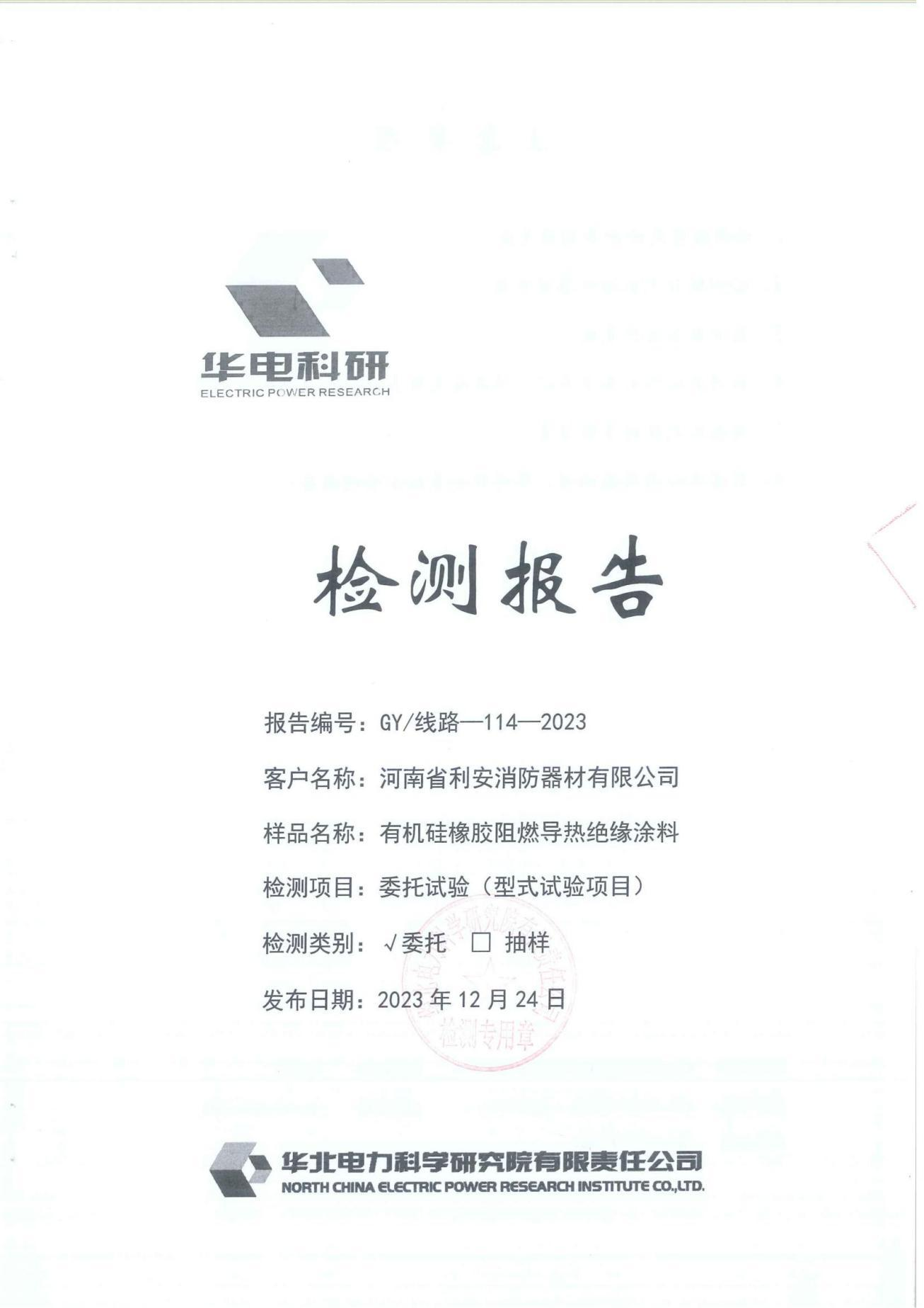 检测报告有机硅橡胶阻燃导热绝缘涂料